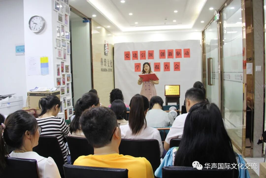 华声文化党支部书记、今日华人出版社社长、盛世濠江传媒集团主席汪建华介绍:华声是一家具有红色基因的文化传播机构,在2003年成立以来,始终高举旗帜跟党走,用党的红色文化引领企业发展;2019年7月,华声党支部成立,现有正式党员5名、预备党员1名、入党积极分子3名。作为一支年轻的党组织队伍,华声党支部紧紧围绕“以文化促党建 以党建筑发展”的发展思路,着力强化目标导向和示范引领,充分发挥党组织和党员积极作用,举办了形式多样的党建活动,坚持以党员争优带动员工争优,以员工争优引领企业创先进,以企业创先进推动企业大发展,打造有朝气、有理想、有责任、有担当的华声文化传播队伍。